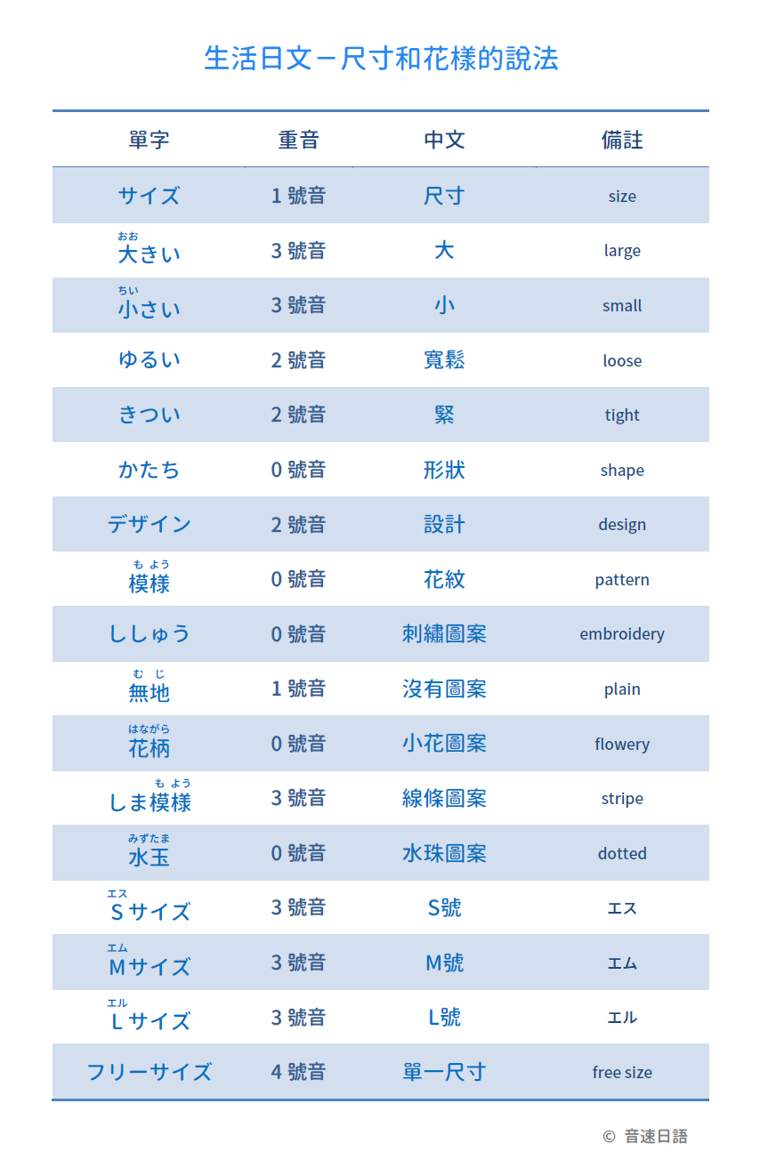 【生活日文字彙04】尺寸和花樣的說法