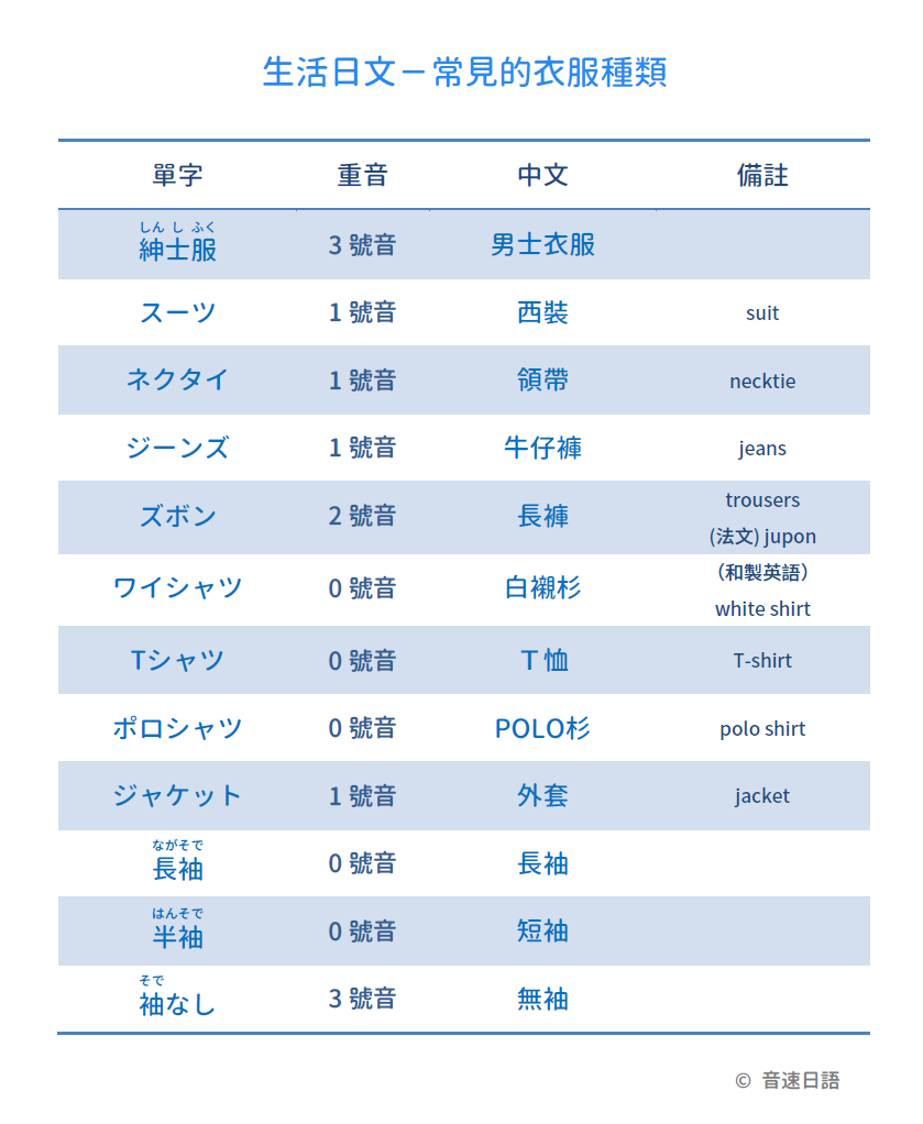 【生活日文字彙05】常見的衣服種類