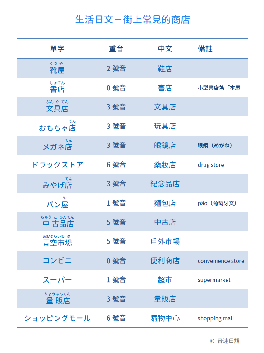 【生活日文字彙07】街上常見的商店