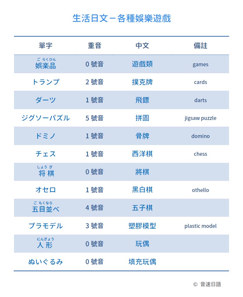 【生活日文字彙08】各種娛樂遊戲