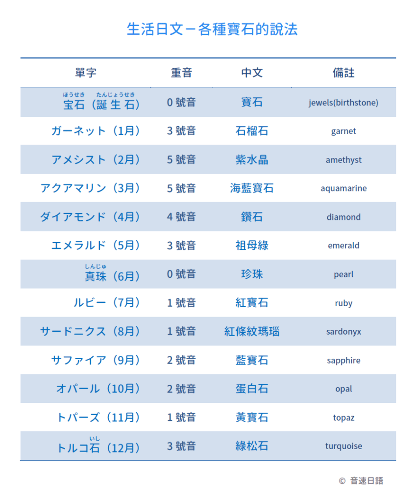【生活日文字彙09】各種寶石的說法