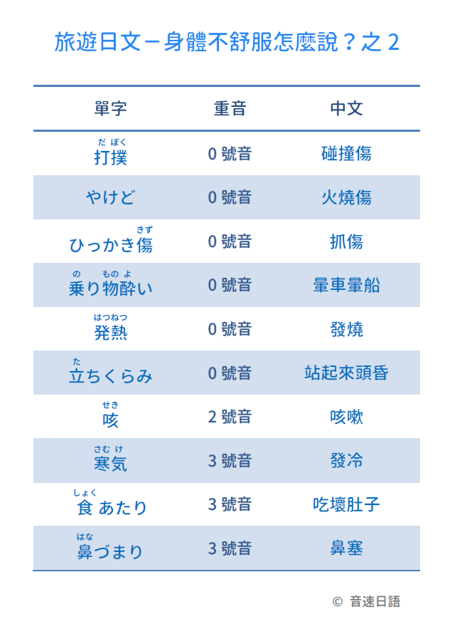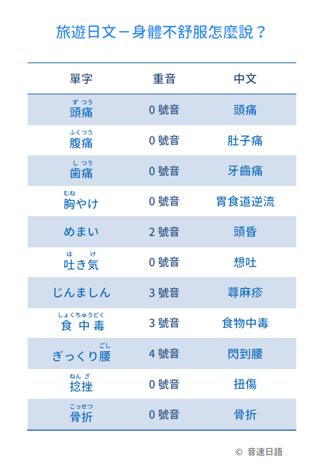 【旅遊日文字彙11】身體不舒服怎麼說