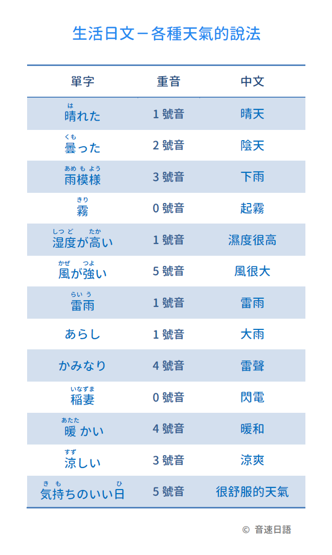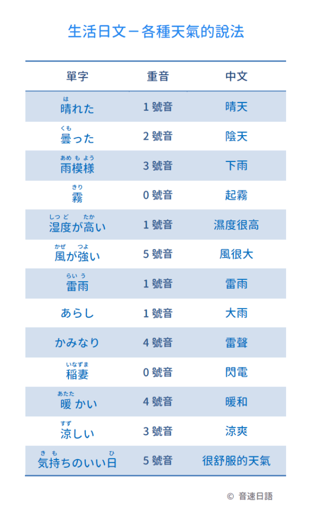 【生活日文字彙10】各種天氣的說法