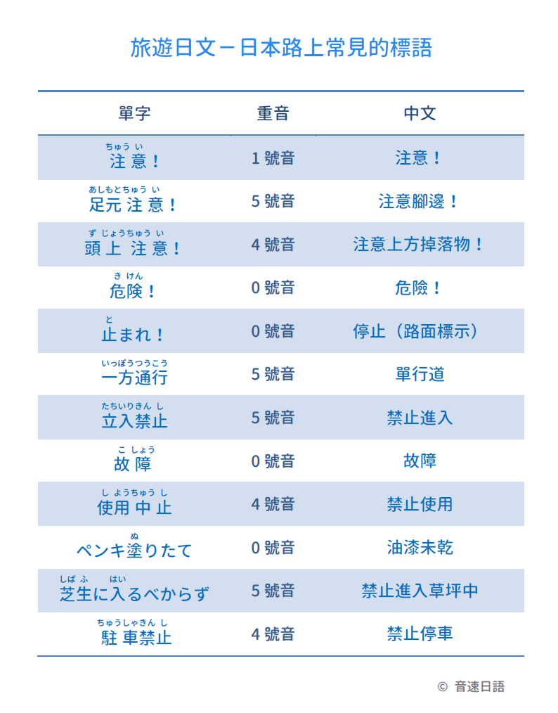 【旅遊日文字彙13】日本路上常見的標語