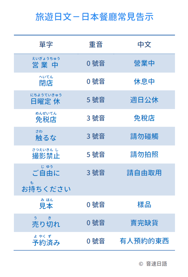 【旅遊日文字彙14】日本餐廳常見告示