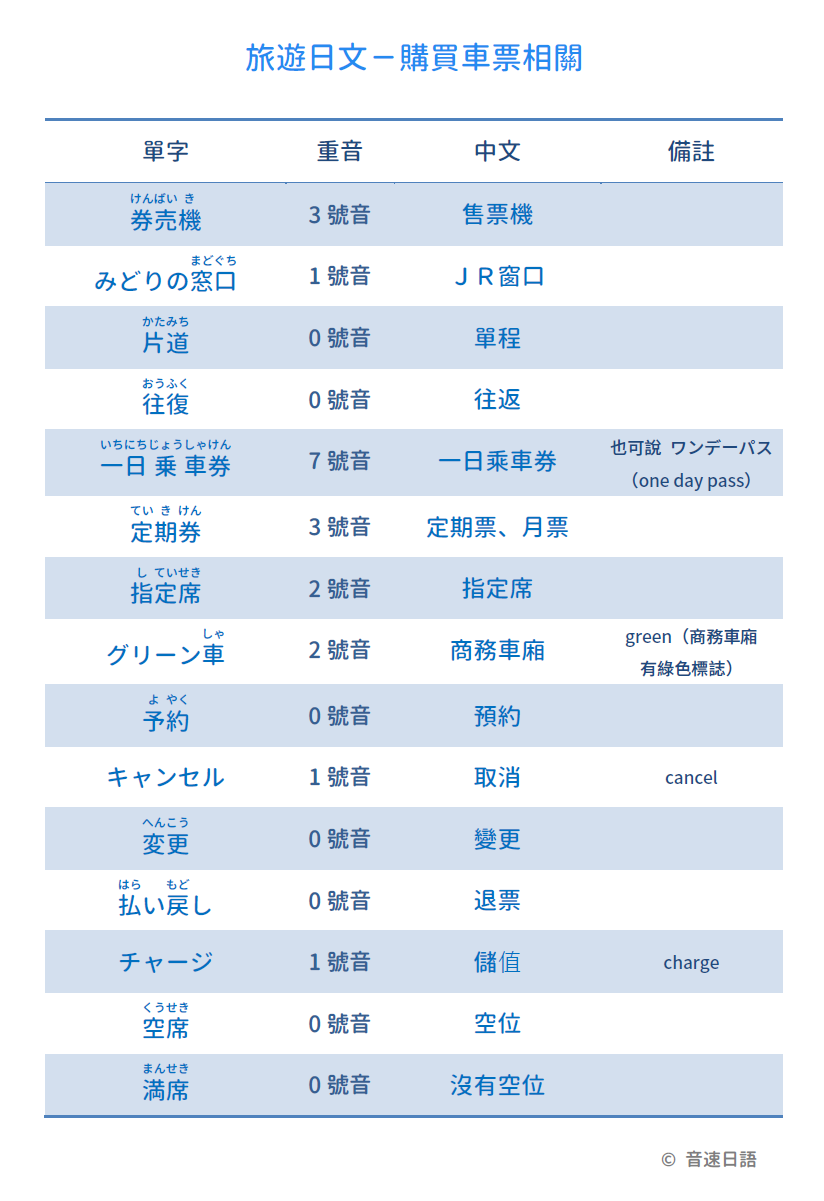 【旅遊日文字彙15】購買車票相關