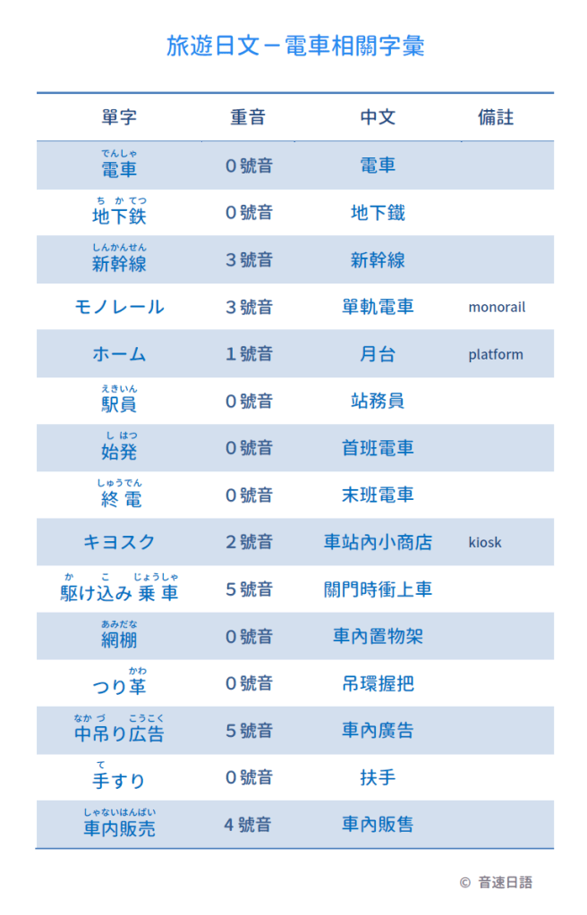 【旅遊日文字彙16】電車相關字彙