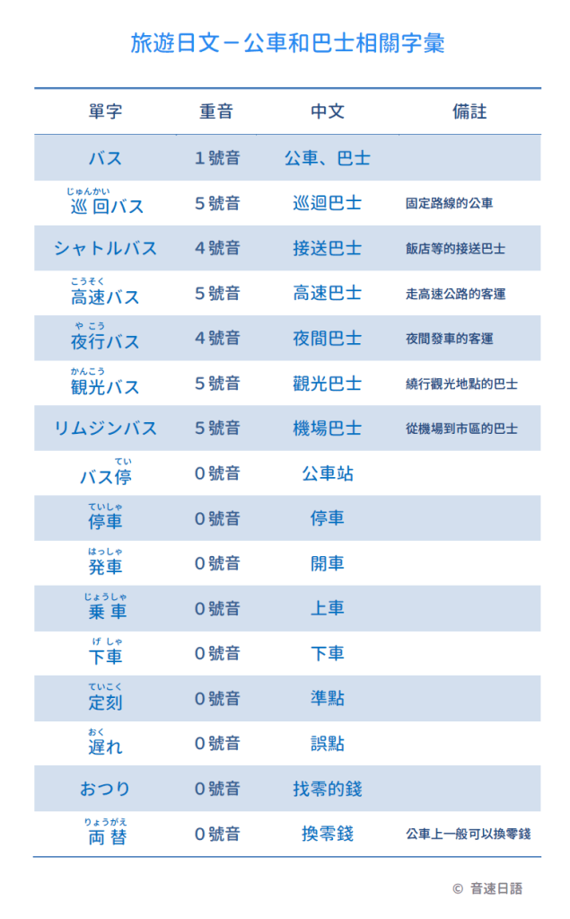 【旅遊日文字彙17】公車和巴士相關字彙