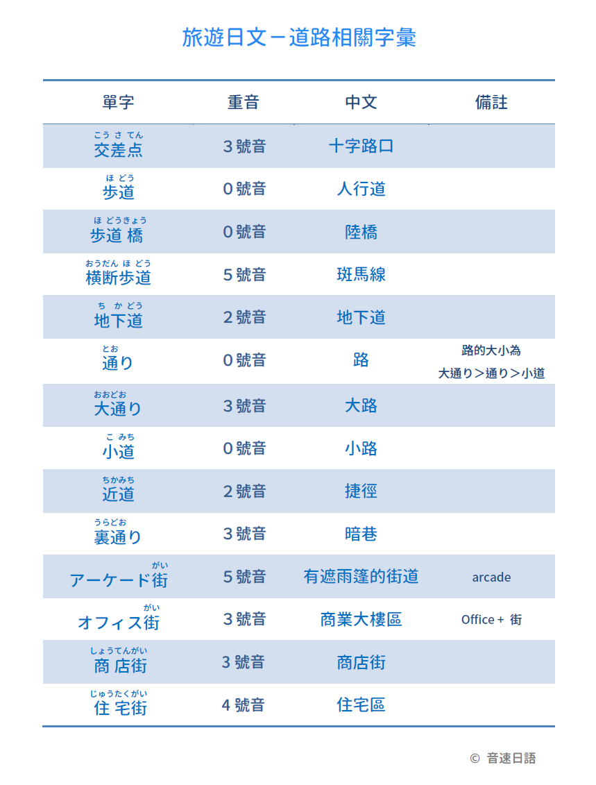 【旅遊日文字彙18】道路相關字彙