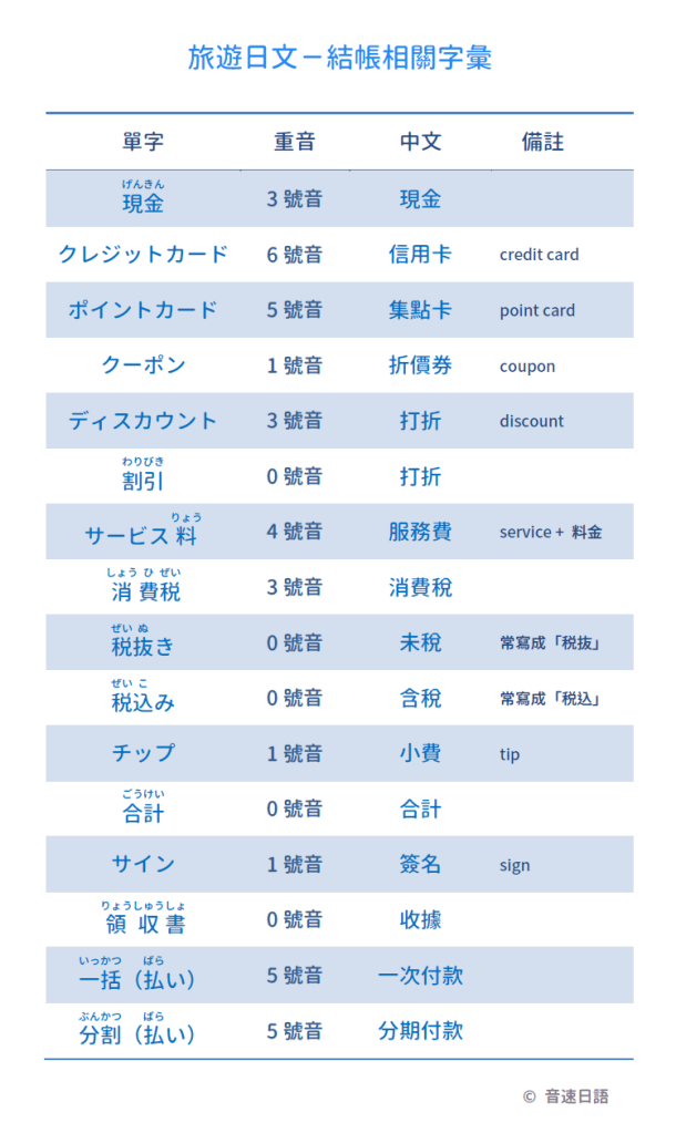 【旅遊日文字彙19】結帳相關字彙