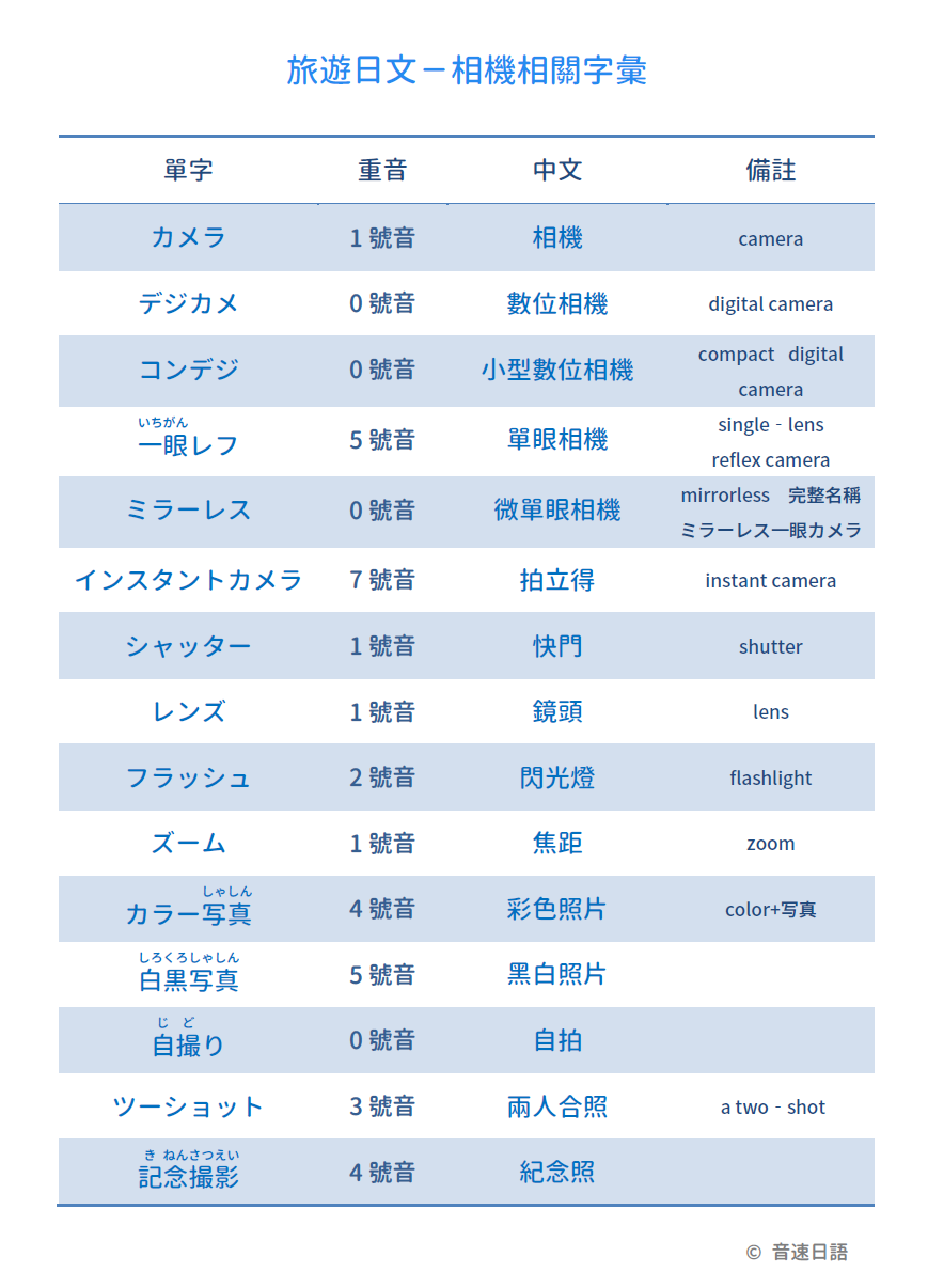 【旅遊日文字彙20】相機相關字彙