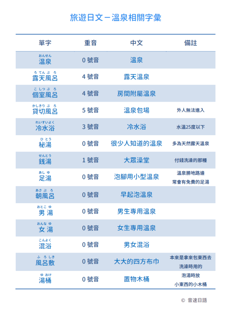 【旅遊日文字彙22】溫泉相關字彙