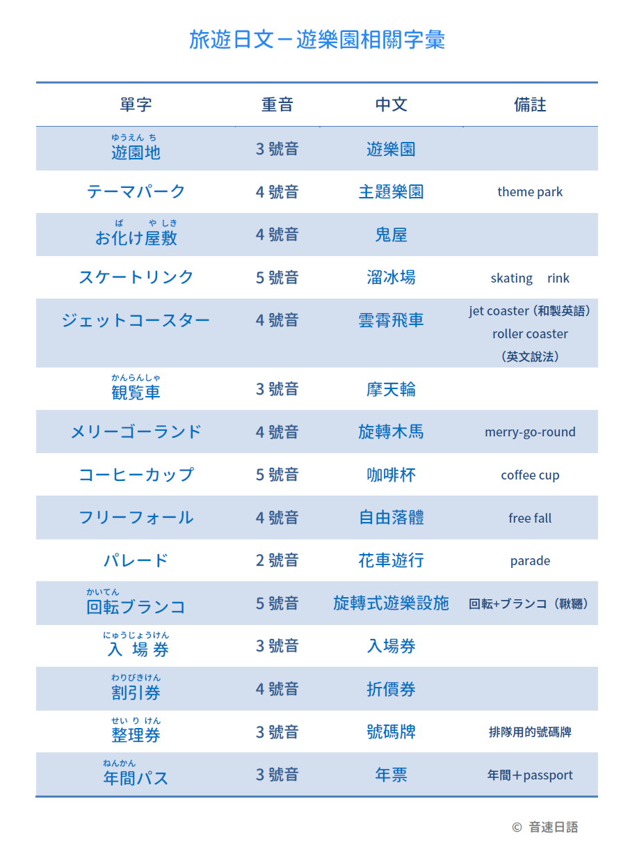 【旅遊日文字彙23】遊樂園相關字彙