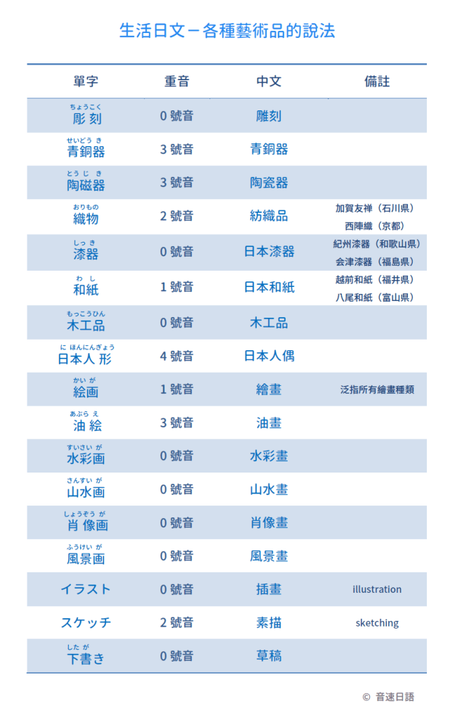 【生活日文字彙11】各種藝術品的說法