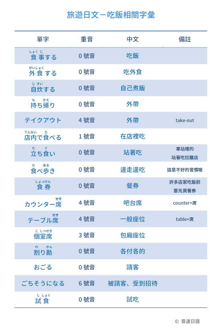 【旅遊日文字彙24】吃飯相關字彙