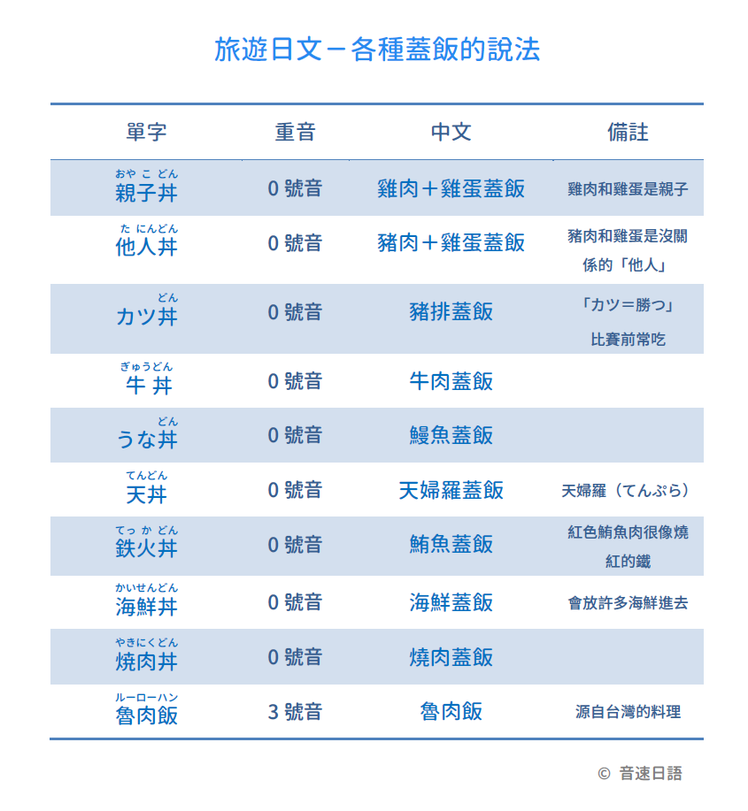 【旅遊日文字彙25】各種蓋飯的說法