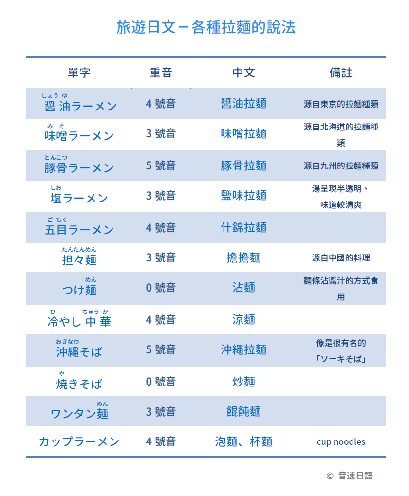 【旅遊日文字彙26】各種拉麵的說法