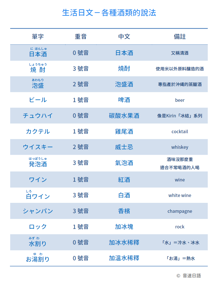 【生活日文字彙12】各種酒類的說法