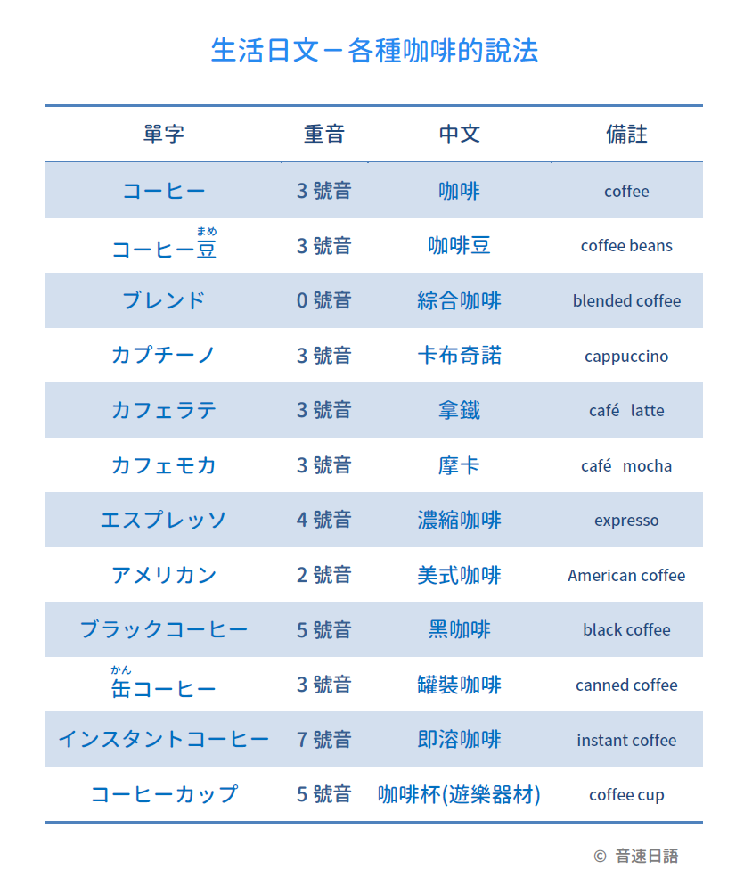 【生活日文字彙13】各種咖啡的說法