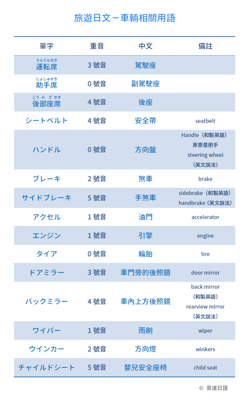 【旅遊日文字彙28】車輛相關用語