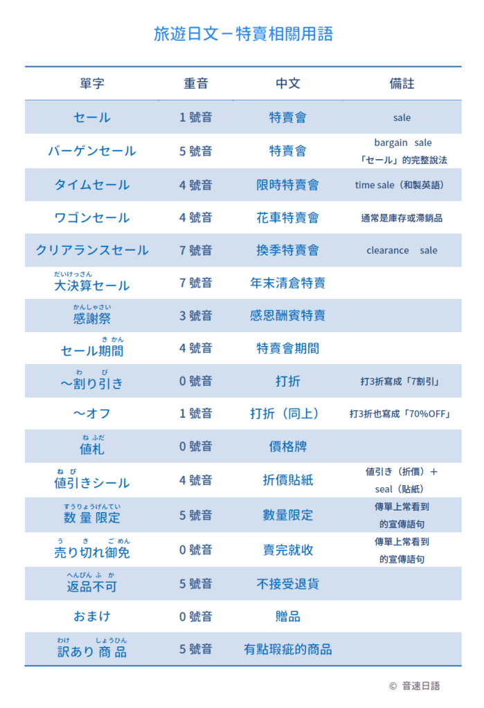 【旅遊日文字彙29】特賣相關用語