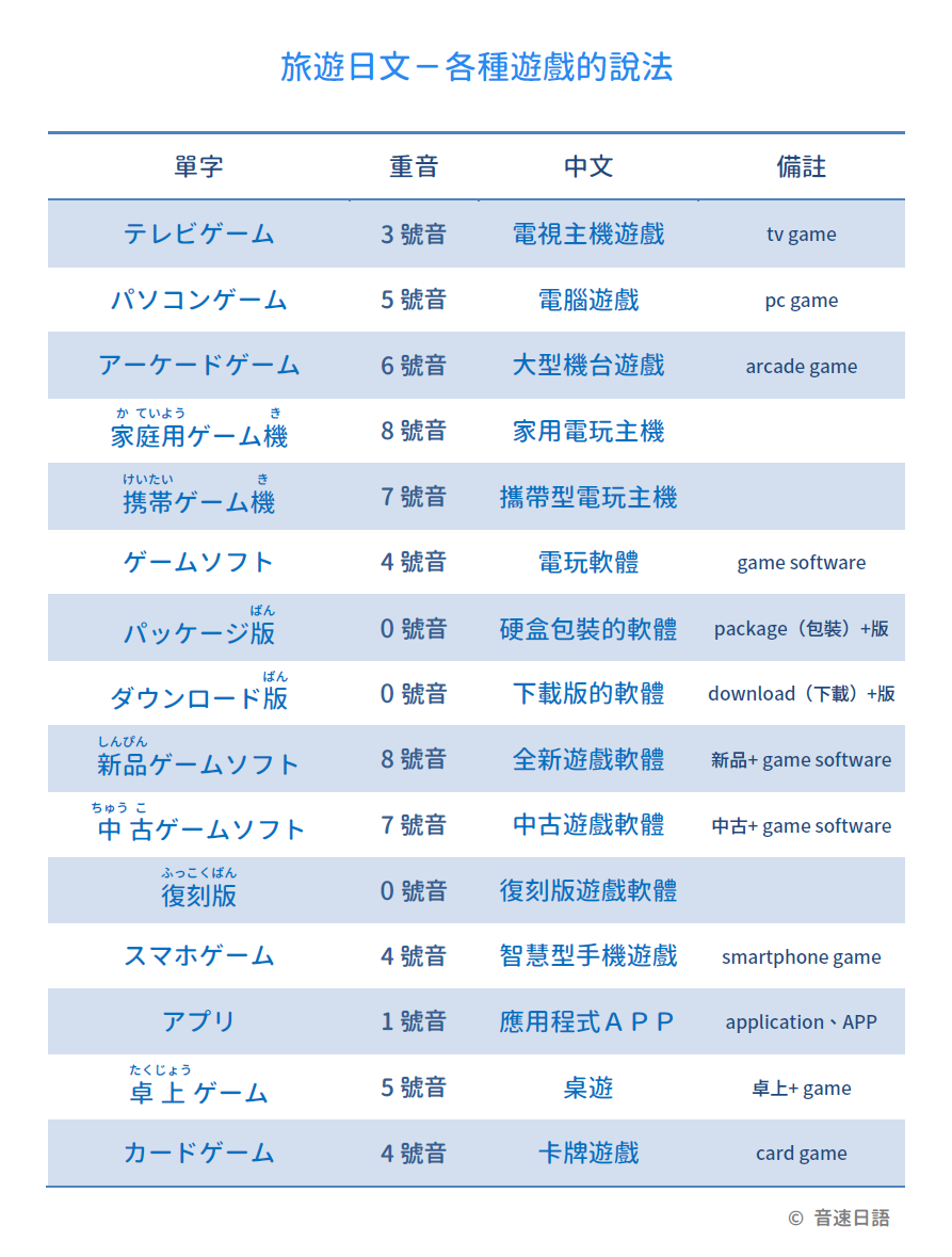 【旅遊日文字彙30】各種遊戲的說法