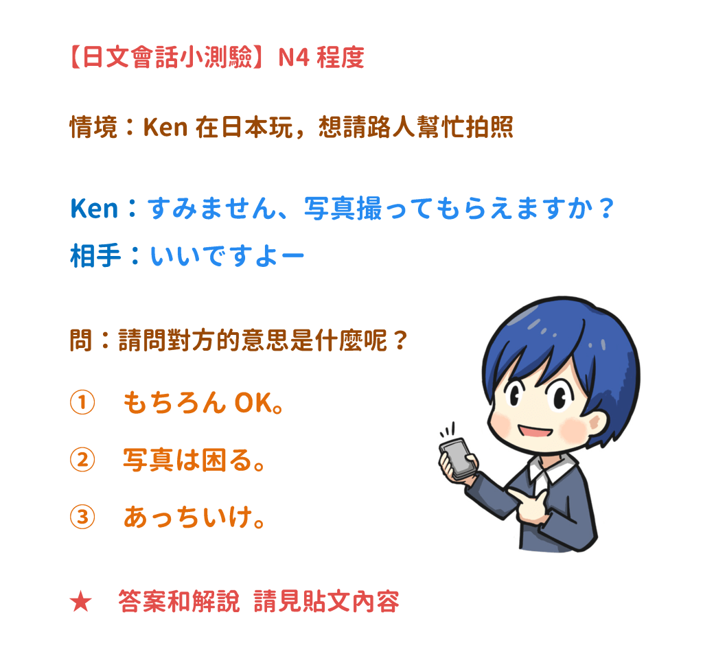今天主題是日文中的「曖昧用法」,圖中的被拜託拍照的人,真正想表達的意思是什麼呢?